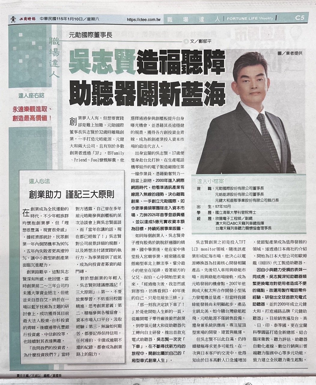 從離開電子零件廠後毅然創業,到帶領元健大和從助聽器代工轉向自主研發,推出首款充電式助聽器,吳志賢一次次「下車」,在不斷尋找新方向的旅程中,開創出屬於自己的「廂型車式創業人生」。